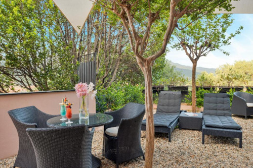 Pampering facilities with a view: Indulge in relaxation with a visit to the hotel's spa, sauna, and swimming pool. You can unwind and soak in the breathtaking views from the panoramic terrace, which overlooks the bay and the surrounding landscape.