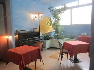 Relax and dine in style: Enjoy a full range of conveniences, including a bar and restaurant that offers an intriguing "alternative meal arrangement." For a special treat, head up to the rooftop terrace, equipped with sunbeds and tables, perfect for unwinding in the open air.